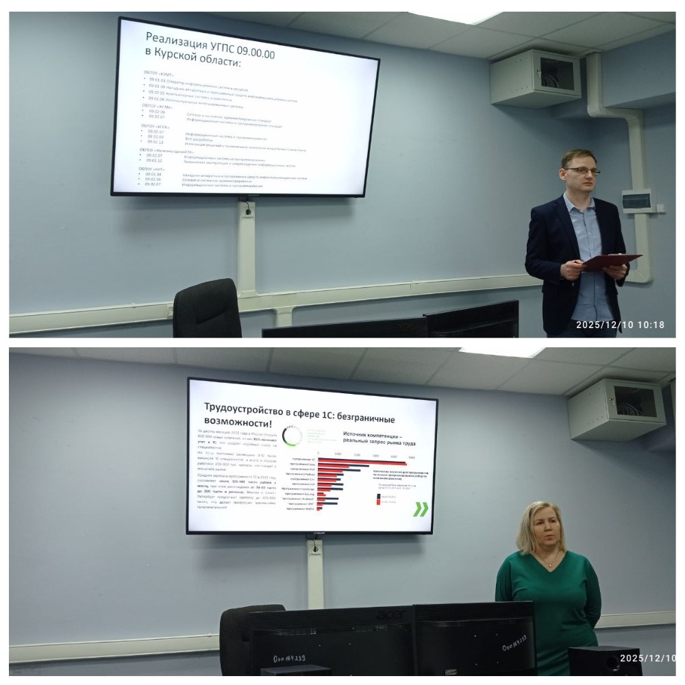 В рамках реализации Плана проведения научно-методических мероприятий для педагогических и руководящих работников профессиональных образовательных организаций Курской области на 2025 год 10 декабря 2025 г. на базе ОБПОУ «Железногорский горно-металлургический колледж» было организовано заседание научно-методического объединения преподавателей и мастеров производственного обучения профессий, специальностей и дисциплин, связанных с внедрением цифровых технологий.